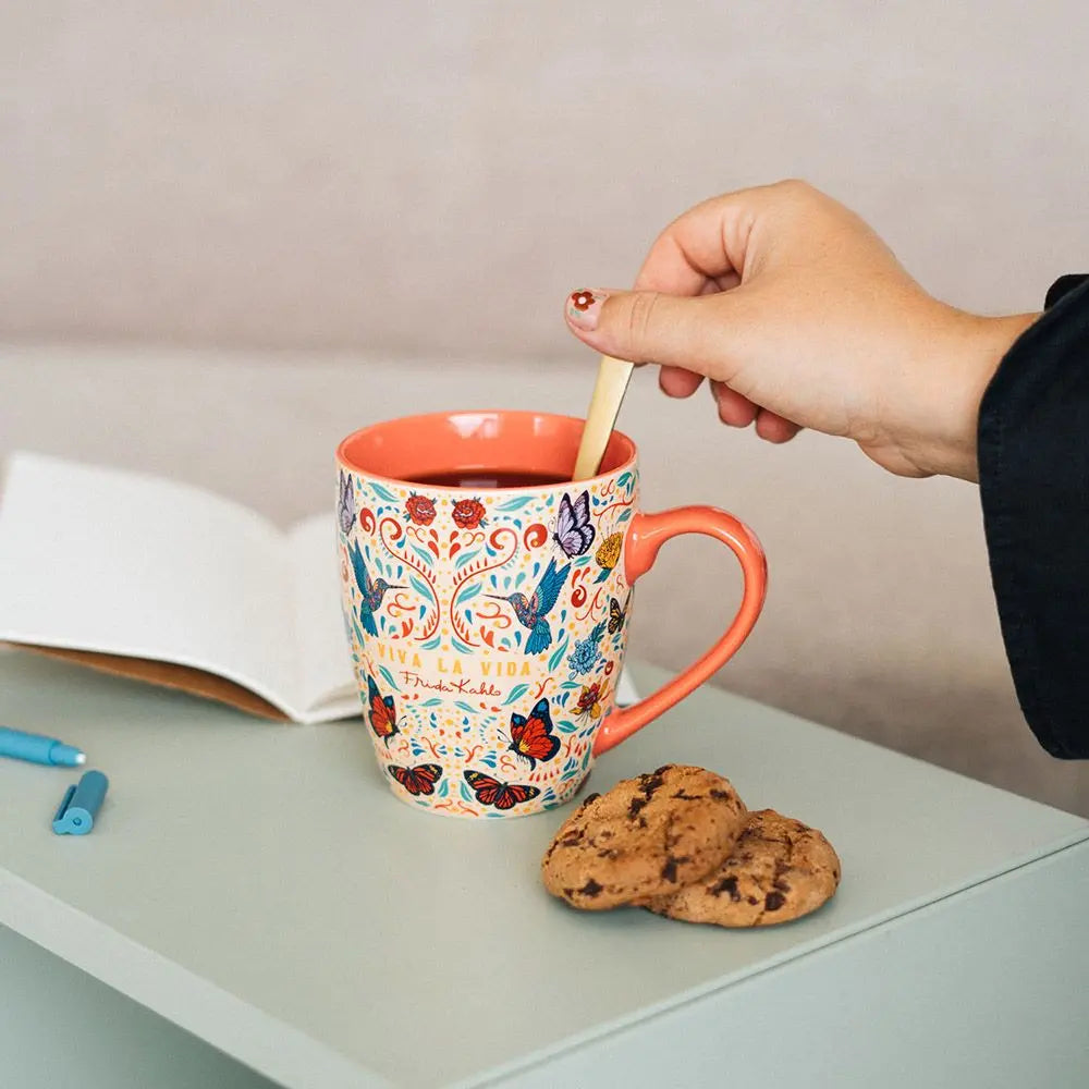 Η ημέρα ξεκινάει πάντα καλύτερα όταν απολαμβάνει κανείς ένα απολαυστικό, αρωματικό ρόφημα στην κεραμική κούπα FRIDA KAHLO Viva la Vida.